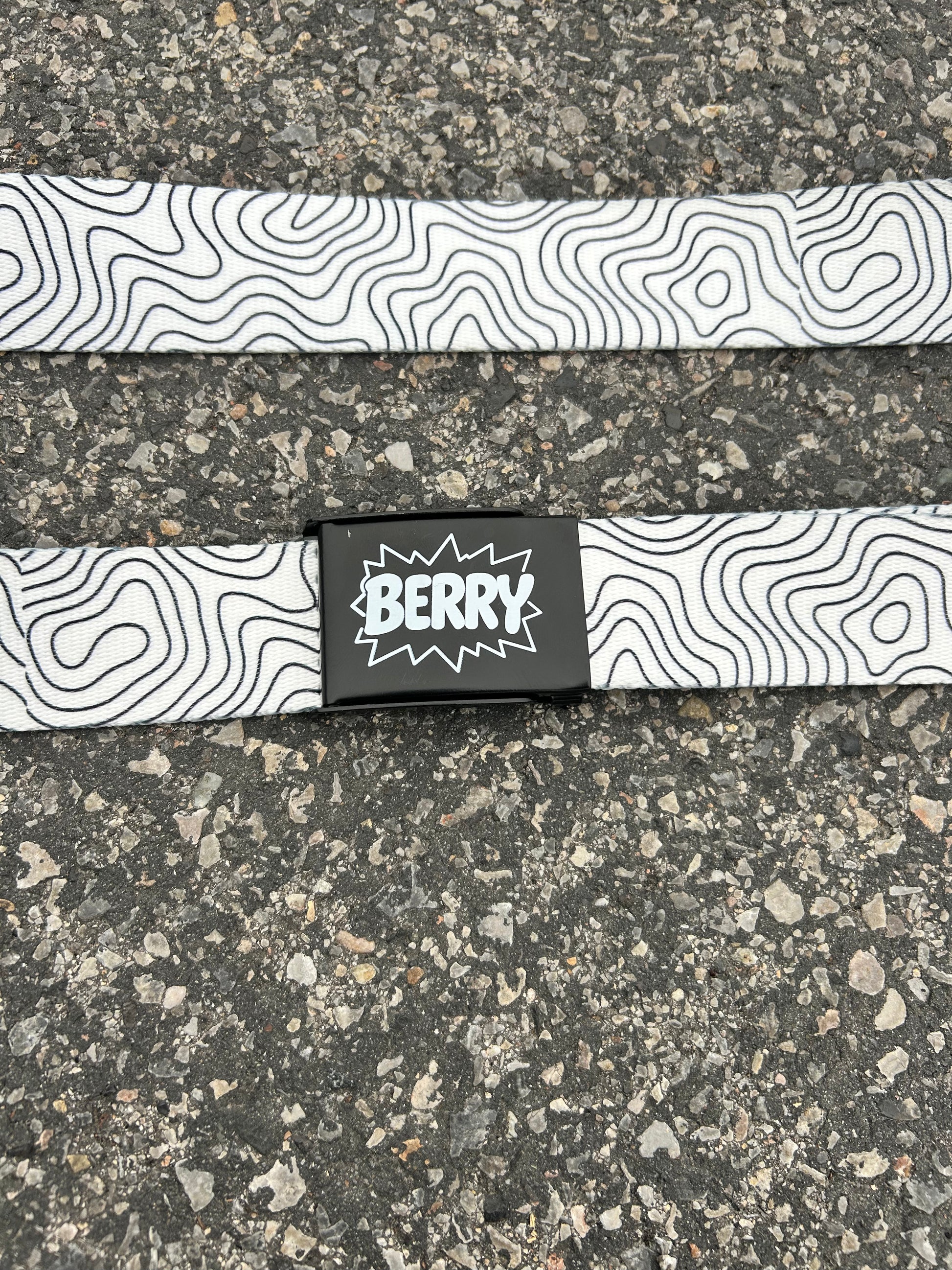 Premium white topographic belt with black topo-line pattern